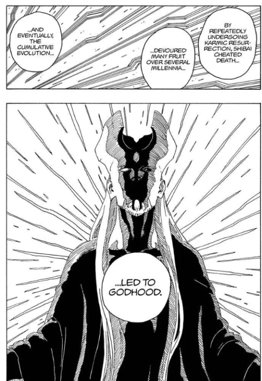 OKAY SO BOOM we know that omnipotence is a divine ability from Shibai which allows the wielders desires to become real to some extent. we see in this in the form of both Eida’s desires and Kawaki’s desires. Its a no brainer of Eida’s showcase since it happens in 90% of Eida’s screentime but for Kawaki’s case its the plot of Two Blue Vortex of his desires to make Boruto a rogue ninja in order to make it easier to kill him. In case anyone does need an explanation for Eida, her omnipotence makes everyone enchanted by her presence and allows her to make anyone fall in-love with her at first glance.
